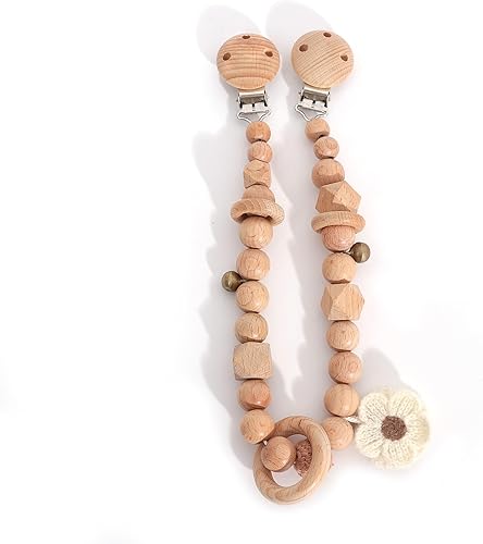 Natural & Safe Materials – Crafted from high-quality natural beech wood and soft hand-crocheted cotton flowers, this stroller chain is polished smooth for safe teething and gentle touch.