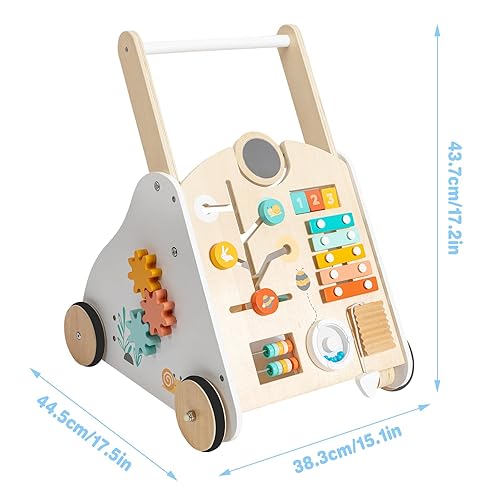 【Wooden Activity Center with Multifunctional Fun】Twefex baby push walker comes with 9 activity toys including xylophone, mirror, shapes sorter, puzzles, beads, tracking game, spinning game, guiro, and gears. With various activities to stimulate baby’s senses, they will love to play with this baby activity center for sure