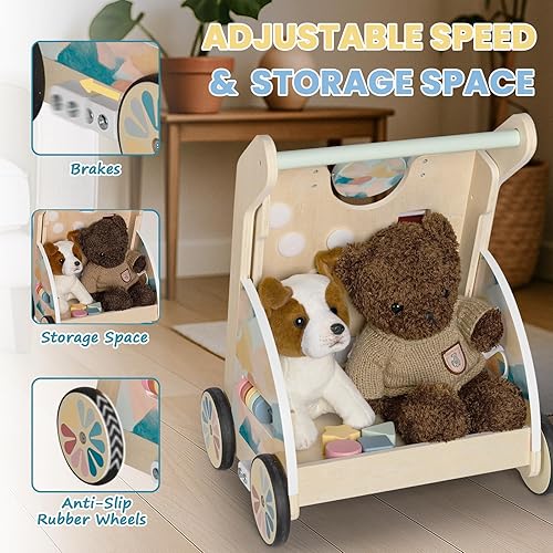 Convenient Toy Storage: This wooden baby walker comes with a built-in toy storage bag, offering plenty of space for your child’s favorite toys. Whether walking or playing, your little one can take their toys along for the ride, making each walk a fun adventure with their beloved items