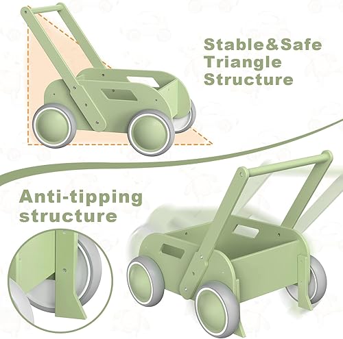 ADJUSTABLE BABY WALKER - The height of our unique design of wood push walker can be adjusted in two stages of 17inch and 18.5inch, and the appropriate height can be selected according to the age of the baby. This toddler walker is Equipped with a handle that is easy to grip, ensuring stability and balance as your baby explores their surroundings