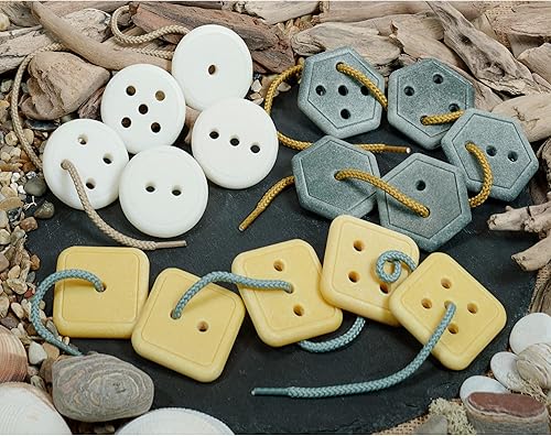 Each set includes 15 tactile stones (measuring 2") and three soft, chunky laces.