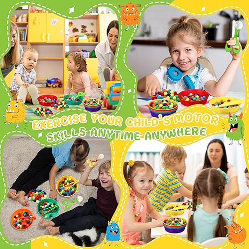 Quality and Reliable Material: this motor skill games set uses quality material; The color wool ball is made of quality polyester high elastic material, average diameter of each one about 0.59 inch, soft and can be comfortably held in the hand; Color classification bowls are made of quality plastic, each about 5.12 x 1.18 inch; The scissors clips and tweezers are made of plastic, with size of 5.51 x 1.57 inch, tweezers are approx. 4.17 x 0.55 inch, offering you a long time of use