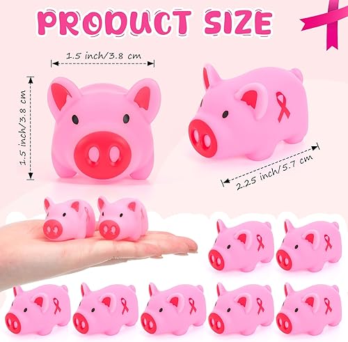 100 Pcs Breast Cancer Awareness Accessories Bulk Mini Rubber Pig Pink Ribbon Cute Squeaky Bathtub Pigs for Women Friend Gift Charities Public Accessories Halloween Christmas Party Birthday