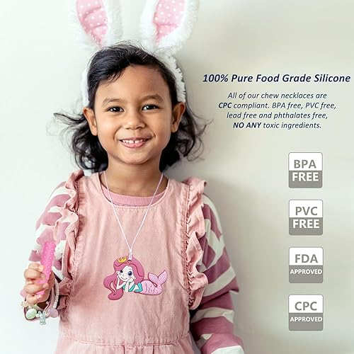 Chew Necklaces for Sensory Kids Adults, 6 Pack Silicone Sensory Chew Toys for Autistic Children with ADHD/SPD/Autism/Anxiety, Pink Chewy Necklace Stim Toy for Teething Chewing Biting Fidgeting