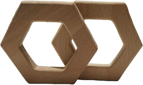 2pcs Baby Teether Handmade Beech Wooden Hexagon Teether Infant Teething Toys DIY Crafts Pendant Chewable Pacifier Chain Accessories (Hexagon 2pcs)