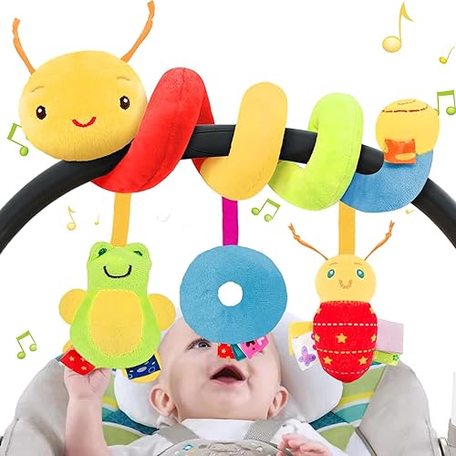 Civaner Newborn Car Seat Toys Stroller Toys for Baby 0-6 Months Infant Activity Spiral Plush Toys Hanging Car Seat Crib Toy for Boy Girls Spiral Hanging Plush Toy Baby Shower Thank You Gift(Delicate)