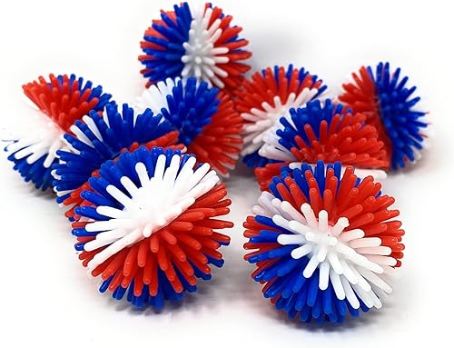 Funiverse Bulk 50 Pack Patriotic 3-Color Porcupine Ball Assortment - 1.25" Spike Ball