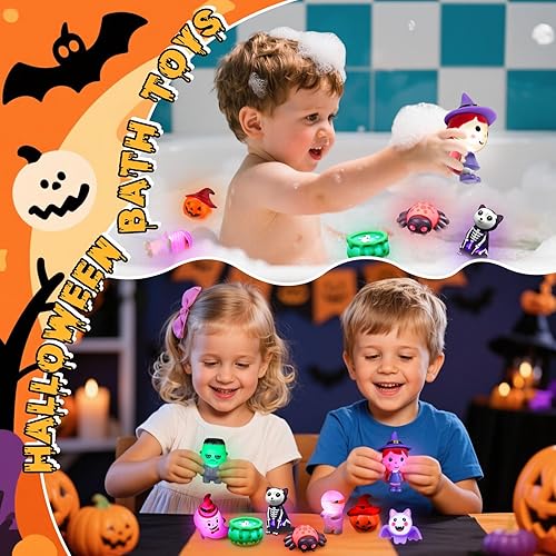 Halloween Light Up Bath Toys for Toddlers Kids, 9 Pack No Hole Bath Toys LED Light Bath Time Water Toys for Bath Tubs Bathroom, Halloween Toys for Kids Toddlers Boys Girls Halloween Party Favors Gifts