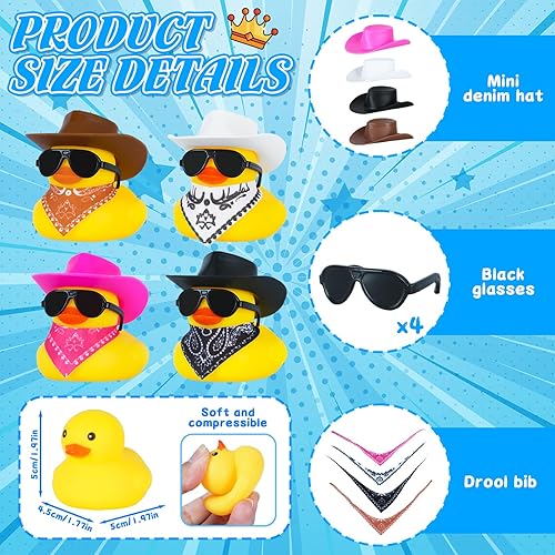 12pcs Cowboy Rubber Duck with Hat, Scarf & Sunglasses | Jeep Ducks for Ducking | Bath Toys | Birthday Pool Party Decorations | Cake Topper Gifts