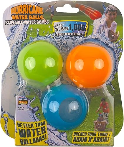 Prime Time Toys Hurricane Reusable Water Balls – 3-Pack Reusable Silicone Water Balloons with Self Sealing Quick Fill for Kids Age 5+, Safe No Magnets