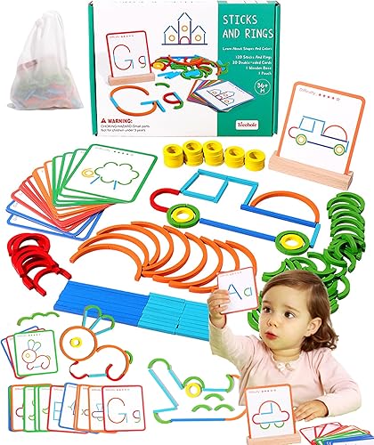 Montessori Smart Sticks, Montessori Smart Sticks for Toddlers - 142 PCS Wooden Sticks and Rings Puzzle Game, STEM Educational Puzzle Toy for Preschool and Kindergarten Kids (1 Set)