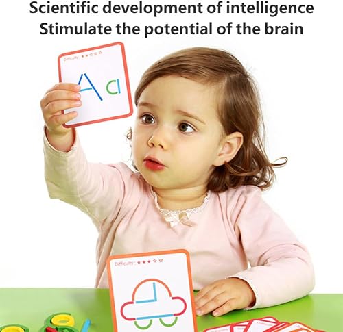 Montessori Smart Sticks for Toddlers, 142Pcs Wooden Sticks and Rings Puzzle Game - Spelling, STEM, and Art in One Toy for Preschool and Kindergarten Boys and Girls