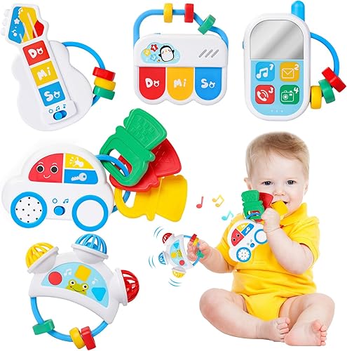 YGJT Baby Sensory Toys 0-6 Month, Baby Musical Rattle Teething Toys 3-6 Month, Early Educational Activity Travel Learning Toy 6-12 Months, Montessori Newborn Shower Gifts for 1 2 3 Year Old Boys Girls