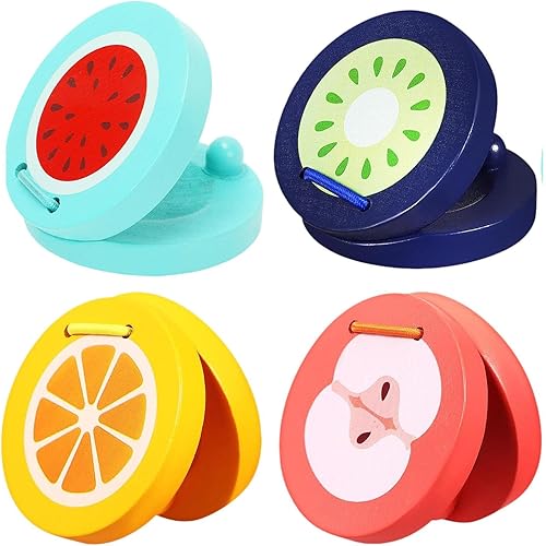 4x Finger Castanets Cartoon Fruit Castanet Fine Motor Skill Sensory Development Music Toy Wood Castanet for Kids Preschool
