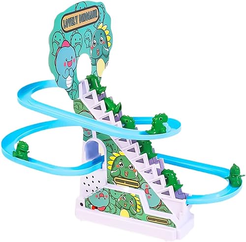 Miracland Electric Stair Climbing Toy with 6 Dinos, Dinosaur Track Sliding Toy Dinosaur Slide Toy Dino Escalator Toy Dinosaur Musical Toy Gliding Track Toy with Music & Lights