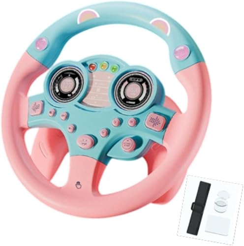 Electric Learning Wheel Toy Musical Driving Wheel Sounding Toy Kids Driving Simulator Toy for Indoor Role Play Birthday Party, Pink