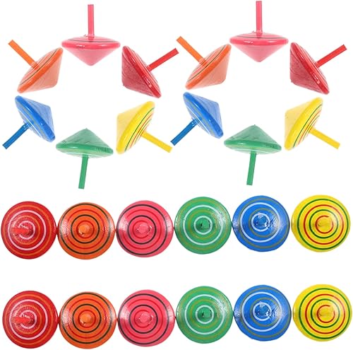 VANZACK Wooden Tops Spinning Elder Care Handmade DIY Painted Wood Spinning Tops for Interactive Play Natural Wood with String Coordination Enhancement for All Ages