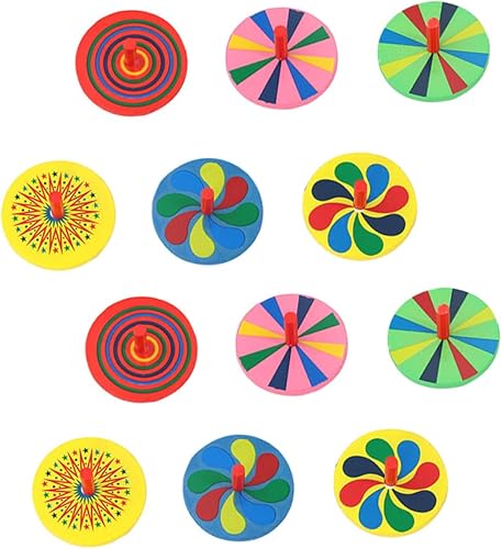 12pcs Wooden Gyro Toys for Boys and Girls Fidget Toys Pack Preschool Learning Spin Pressure Relief Gyro Random Style