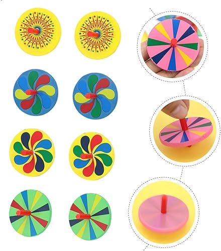Garneck 10pcs Wooden Spinning Tops Handcrafted Gyro Toys for Boys and Girls Enhances Hand-Eye Coordination Cognitive Skills for Home School and