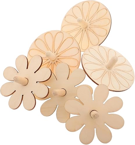 VANZACK 6pcs Boys and Girls DIY Wooden Painting Spinning Tops Unpainted Handmade Toys for Boys and Girls