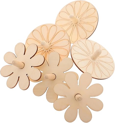 Totority Paint Your Own Wooden Spinning Tops 6pcs Boys and Girls DIY Gyroscopes Unfinished Toys for Craft Sets