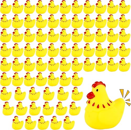 80 Pcs Rubber Chickens Bath Toys Mini Yellow Chicks Squeezable and Squeak Toys Bulk Floating Rubber Chickens for Boy Girl Baby Shower Swimming Pool Birthday Party Favors Gifts