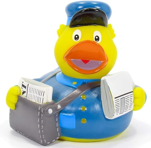 Newspaper Delivery Person Rubber Duck Bath Toy | Squeaker Sound, Child Safe, Gift, Cake Topper, Part Favor | Collectable | 3.5” | Imported from Germany