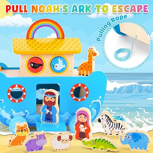 Toddlers Noah's Ark Toys with Wooden Animal Shape Sorters, Baptism Gifts for Girls Boys 2 3 4 Years Old, Montessori Educational Toys for Toddlers, Bible Story Book for Kids Ages 2-4