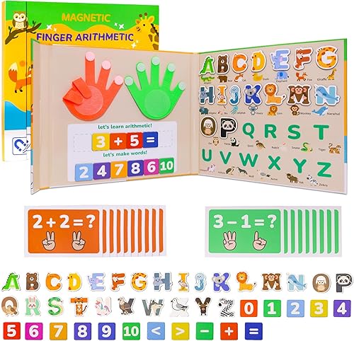 2 in 1 Preschool Learning Toys, Educational Number Counting for Kids, Portable Animals Magnetic Alphabet Letters Learning Board, Homeschool Supplies for Math Manipulates and Learning Spelling.