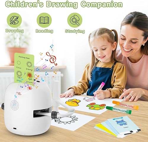 Drawing Robot for Kids, Montessori Painting Learning Toys, Voice Interactive Educational Drawing Machine with 100 Word Cards for 3 4 5 6 7 8 Year Old Boys Girls Gift