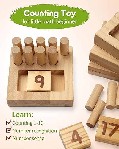 SYNARRY Wooden Counting Peg Boards - Montessori Math Manipulatives for Kindergarten Learning Activities, Number Addition and Subtraction Games for Homeschooling, Math Counters Toys for Kids Ages 3-8