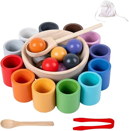 SUNNYUP Rainbow Balls in Cups Toddler Toys,Rainbow Balls in Cups for Learning Color Sorting and Counting,Kids Color Classification Cup Game for 3 Year Old up Kids with 12 Ball