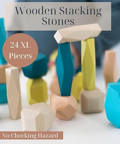 Everett & Avery Co. Premium XL Wooden Blocks - 24 Pack Montessori Stacking Toys for Toddlers 3-5