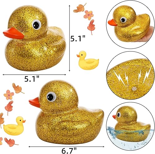 Goaste 2 Pack Giant Glitter Rubber Ducks, 6.7 Inch Big Yellow Ducky, Large Sparkly Toy Duckies with Squeaky Sound, Bathtub Floating Rubber Ducks for Baby Shower, Birthday Party, Summer Beach