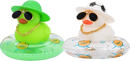 wonuu 2Pcs Car Dashboard Decorations Color Ducks, Rubber Duck for Car Ornament Accessories with Mini Hat Sunglasses Necklace and Swim Ring, A_Pink&Blue Duck+Pink Cowboy&Blue Sun Hat