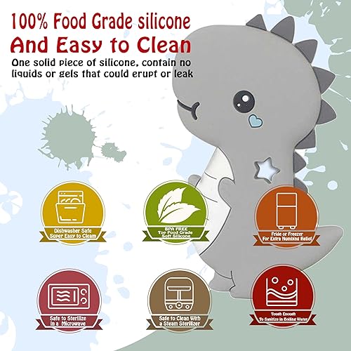 Teething Toys 3-6 Months, Teethers for Babies 3-6 6-12 Months for Teething Relief, Baby Teether Teething Toys 100% Silicone, Newborn Infant Sensory Baby Toys 0-6 Months,bebe mondo (Dino)
