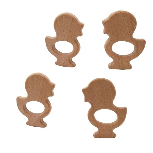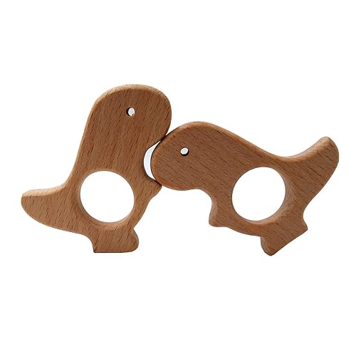 Arakierst 10pcs Lovely Cartoon Wood Duck Teether Pure Natural Animal Shape Beech Wooden Handmade Pattern DIY Jewelry Making Necklace Pendant