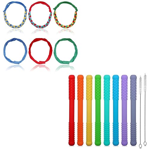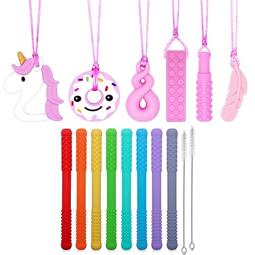 Chew Necklaces for Sensory Girls 6 Pack and Teething Tubes for Babies 8 Pack