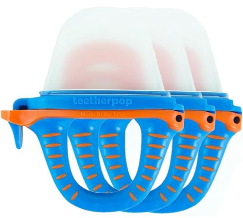 Teetherpop Fillable Silicone Teether for Babies (3-Pack) – Breastmilk Popsicle Molds for Teething w/Spill-Proof Sippy Slits – Baby Teethers for Liquid & Purée – Cooling Teething Relief (BlueOrange)