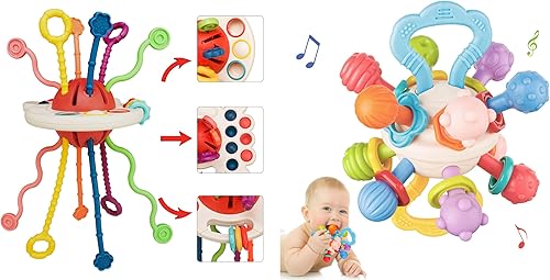 Montessori Toys Food Grade Silicone Pull String Activitys Baby Sensory Teething Relief Ball for Infants Rattle Chew Toys