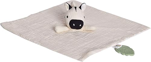 Zebra Comforter with Natural Rubber Teether – Organic Baby Snuggle Toy | Soft Fabric Safari Comforter with Easy-Grip Leaf | Safe Non-Toxic Sensory Toy & Teething Relief for Newborns & Infants