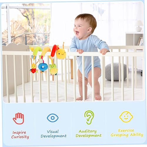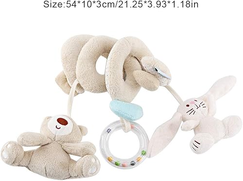 Bear Spiral Wrap Toy, Baby Stroller Crib Hanging Rattle Toys with BB Device, Travel Activity with Ring Box, for Infant