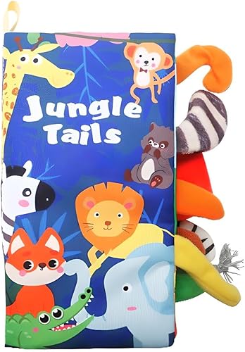Jungle Tails Baby Cloth Book | Soft Crinkle Sensory Toy for Infants 0–12 Months | Touch & Feel Activity for Tummy Time, Stroller