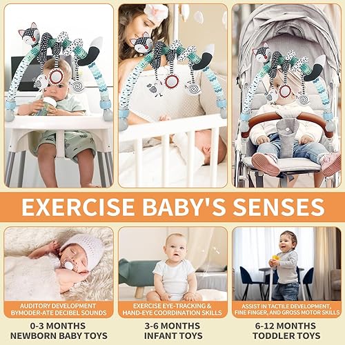 XIXILAND Car Seat Toys for Babies 0-6 Months Boy Girl Carseat Toys Hanging & Black and White Baby Toys 0-3 Months Baby Rattles 0-6 Months, Infant Toys Nwborn Toys for 0 3 6 9 12 Months