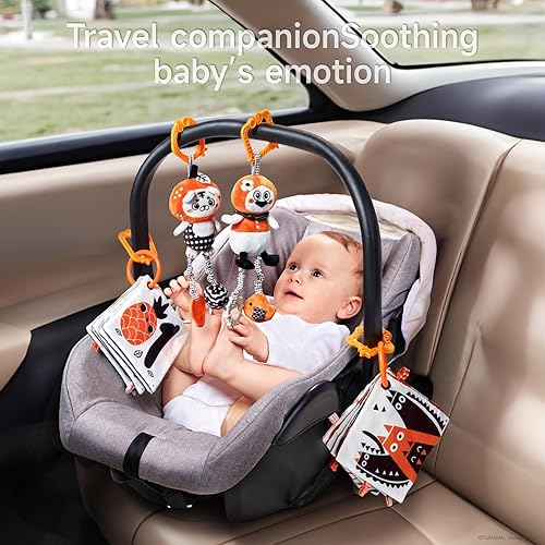 TUMAMA KIDS Hanging Toys for Baby Gym, Black and White Baby Toys, High Contrast Rattle Toy & Soft Book Set,Car Seat Toys for Babies,Early Educational Toys for Infant Babies 0 3 6 9 12 Month