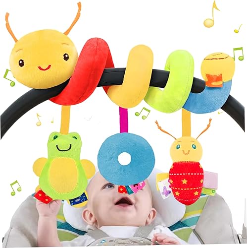 Spiral Car Seat Activity Toy, Stroller Arch Toy, Baby Crib Toys Hanging for Infant Boy Girl Ages 0-12 Months, Newborn Sensory Toy with Rattle, Squeaky, Ringing Bell for Bassinet, Stroller, Crib