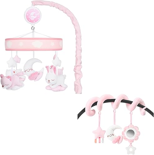 Baby Mobile for Crib with 12 Lullabies Digital Musical Box, Spiral Car Seat & Stroller Activity Toy, Pink Design for Nursey Decor