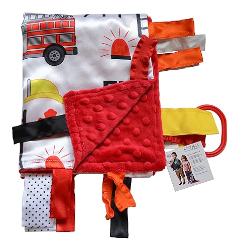 Baby Jack & Co 8x8” Fire Lovey Tag Toys for Babies - Baby Crinkle Toys - Crinkle Toys for Baby - Soft & Safe - Learn Shapes & Colors - Ideal Baby Toy - BPA Free w/Stroller Clip