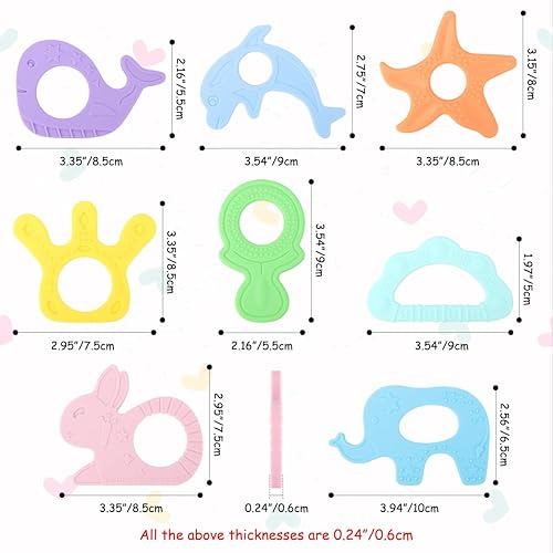 BEBOAN Silicone Baby Teething Toys, 8 Pack Cute Baby Teether Teething Ring Chew Toys Frozen Teether, BPA Free Easy to Grip Gifts for Infant Girls Boys 3 Months +