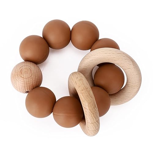 Socub Baby Teething Toy, Organic Baby Teething Ring, Silicone & Beech Baby Rattle Teether for 3+ Months, BPA Free, Clay